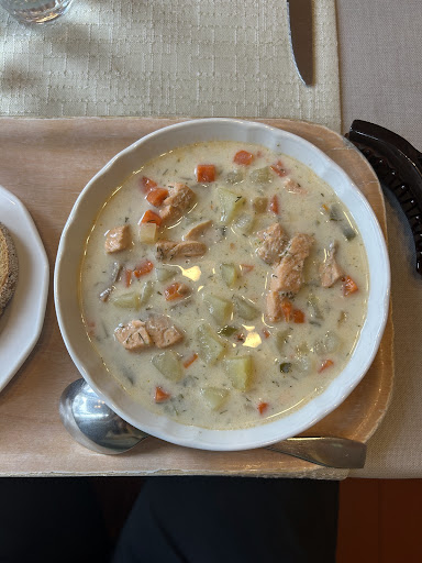 Iiris10/23/2025Such a nice, relaxing and welcoming place close to the castle, in the old town of the charming town of Savonlinna. ❤️ We enjoyed our coffee here every morning out of the five we stayed here, in the backyard, among the trees and the chirping of birds. The atmosphere is superb! As was the crispy croissant we enjoyed. We also tried the salmon soup and the reindeer stew, but also the hamburger. The interior reminds me of a noble wooden house, elegant and full of charm. The staff is very kind, nice, welcoming! I love this place! Congratulations, you do a great job! 💯👍👏❤️read moreread less
