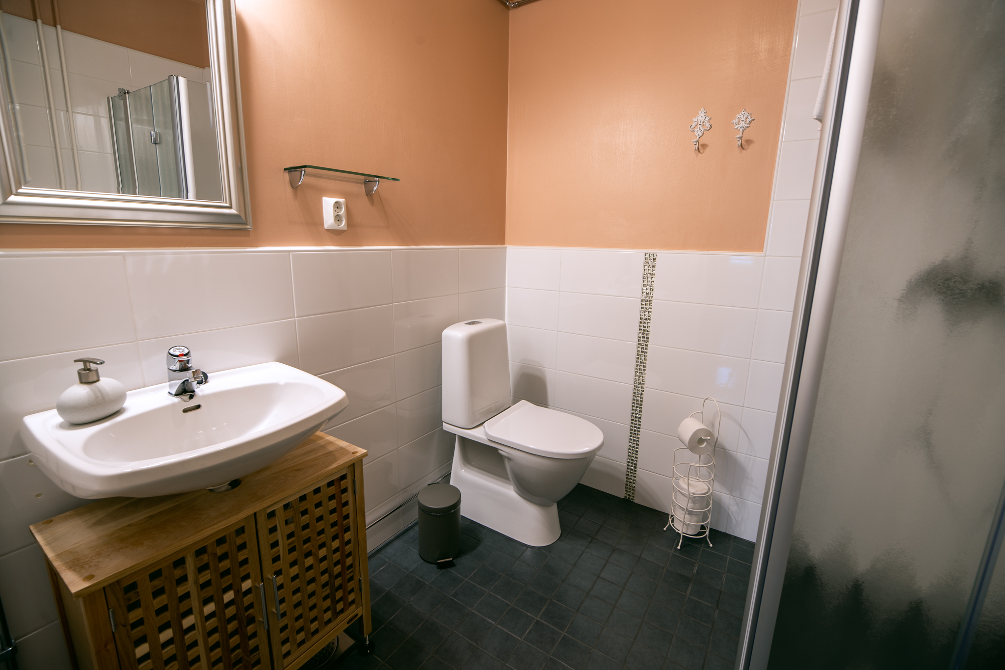 Oma suihkullinen kylpyhuone, iso parisänky, taulu-TV, ilmainen Wi-Fi, hiustenkuivaaja, keskuslämmitys, lisäsänkymahdollisuus ennakkovarauksella