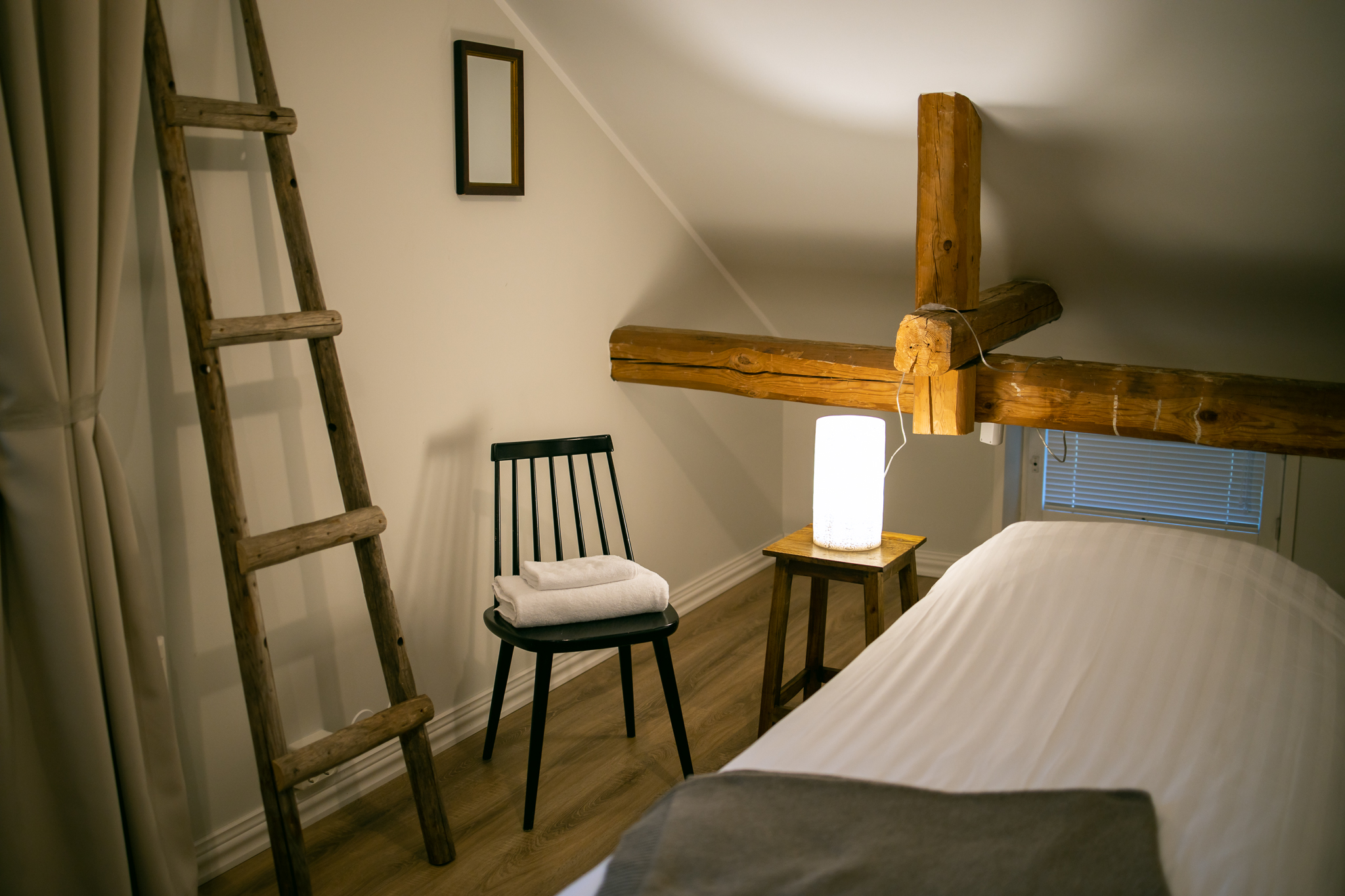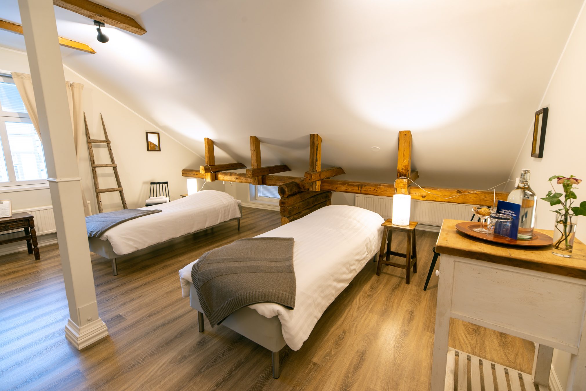 Huonevarustus: Yksityinen suihkullinen kylpyhuone ja wc sijaitsevat hotellin käytävän varrella lähellä huonetta (huomioittehan, että kylpyhuoneen kattokorkeus on muuta hotellia matalampi), kaksi yhden hengen sänkyä, taulu-TV, ilmainen Wi-Fi, hiustenkuivaaja, kylpytakit, keskuslämmitys.