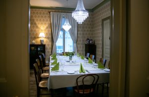 Kahvilamme koostuu viidestä kahvilasalista, joita yhdistelemällä saamme sopivat tilat niin pienemmille kuin suuremmillekin ryhmille. Jokaisessa kahvilasalissa on omanlaisensa värimaailma ajan henkeen kuuluvissa tapeteissa sekä näköala Olavinlinnaan, Saimaalle tai vanhaan kaupunkiin. Puutarhaterassillamme voitte kesäkuukausina ottaa vastaan juhlavieraitanne ja nauttia alkumaljaa. Ota yhteyttä ja toteutetaan teille yhdessä ikimuistoiset juhlat!